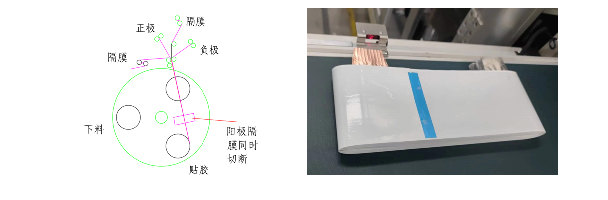 ⚪ 极片隔膜同时切断,减少卷绕辅助时间2秒